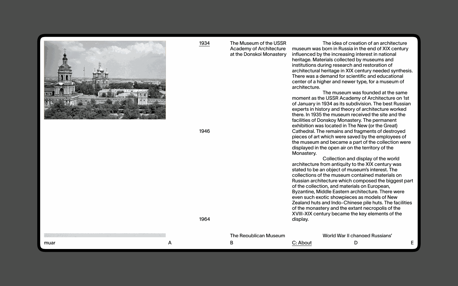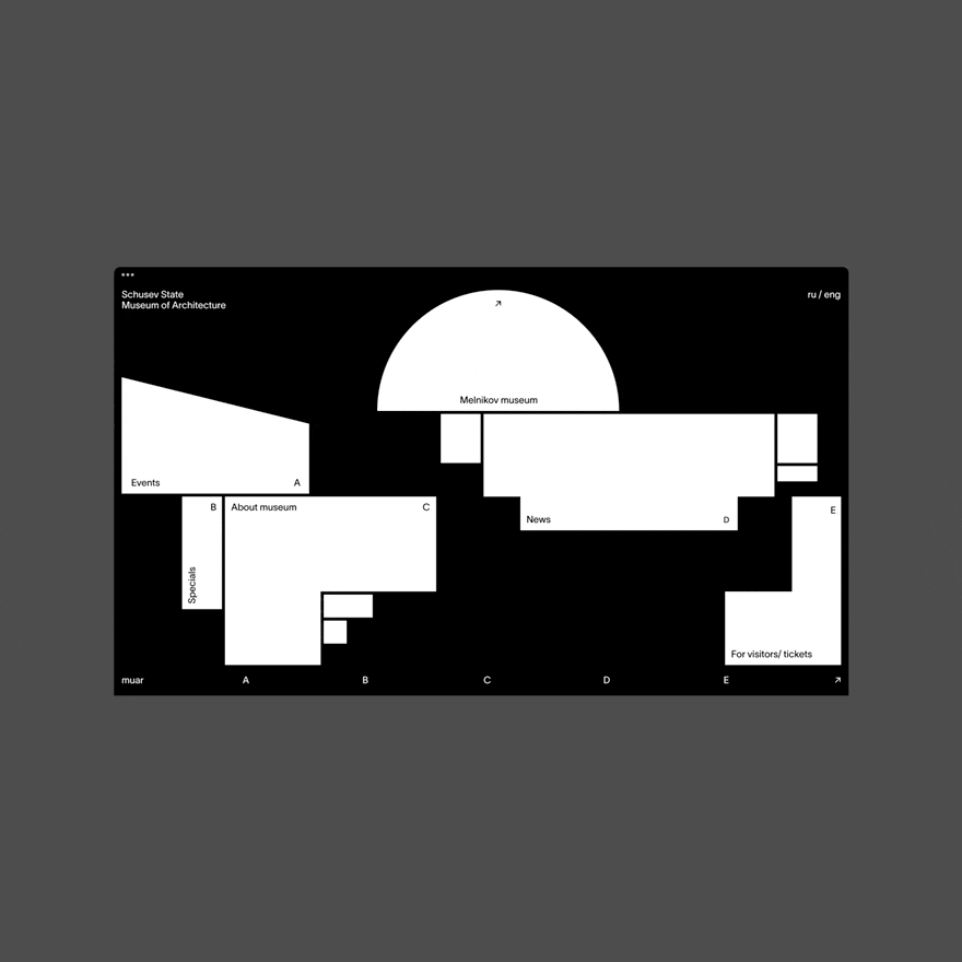 MUAR is a visual website concept for the Shchusev Museum of Architecture, created as part of a BBE course project.